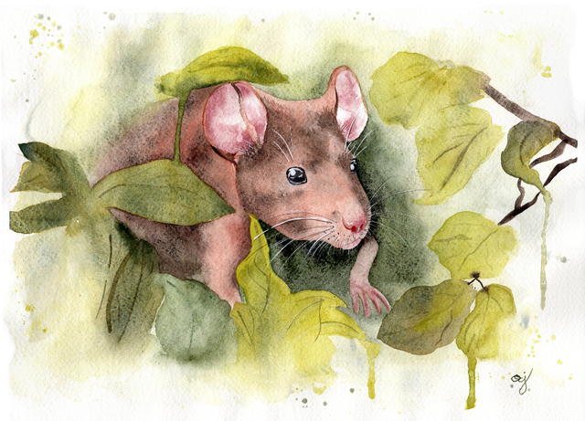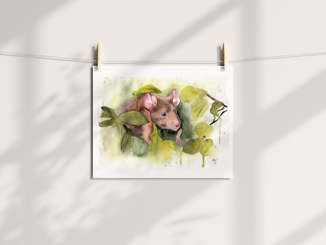 Discover the hidden charm of one of nature's most misunderstood creatures with this watercolor painting of a forest rat. Despite their sometimes negative reputation, rats play a crucial role in maintaining ecological balance and supporting biodiversity. These intelligent, clean, and friendly animals are excellent communicators and vital to their ecosystems. This artwork captures their natural cuteness and brings a touch of the forest's beauty into your living space. Perfect for adding an element of unexpected charm and appreciation for nature's lesser-known heroes.