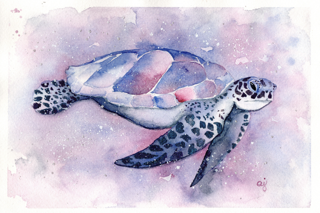 Other: The pattern on the turtle and some of the splatters in the background were painted with metallic colors, giving this painting an extra drizzle of spark and shine.